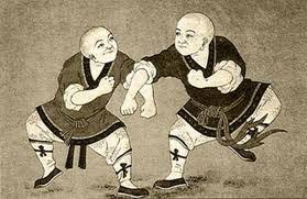 año 4000 antes de J.C. en el Antiguo Egipto. Asimismo se han hallado elementos entre los restos del reino sumerio de la Mesopotamia, que datan del año 3000 antes de J.C. y que revelan que también allí se practicó algún sistema de combate con los puños. Entre los siglos V y VI antes de J.C. nos llegan testimonios desde Grecia de una disciplina de combate, que se realizaba durante los Juegos Olímpicos, denominada Pancracio. En la India nos encontramos con el Vajramushti, arte marcial practicado en la antigüedad por la casta guerrera kshatriya. Es muy probable que desde la India llegaran a China los primeros conceptos de estas disciplinas, donde florecieron de una manera especial desarrollándose paralelamente, a los conceptos religiosos que predicaban una contemplación interna del mismo individuo, y desde donde han trascendido hasta nuestros días. En sus inicios, podría ser que el Karate cubriera fundamentalmente la necesidad de defenderse, pero ha sido la visión que tuvieron de el, grandes maestros, al considerarlo como una herramienta pedagógica que no sólo formaba física y técnicamente a sus practicantes, sino que también contribuía notablemente en su cualidad humana, la que ha permitido su gran expansión y la adopción de esta disciplina en todo el mundo.La etapa china